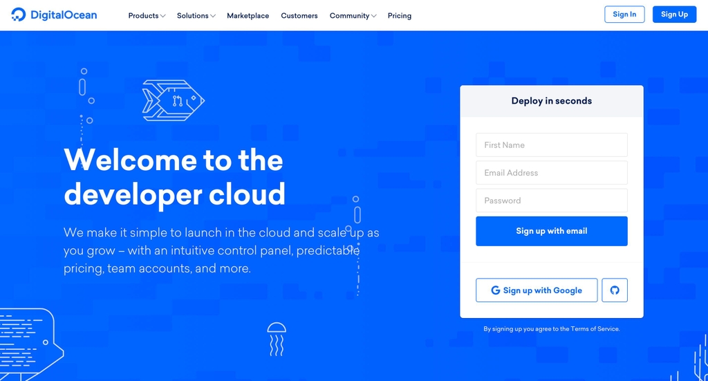 First thing you need to do is creating a DigitalOcean account. Go to the website and sign up if you don’t have an account already.